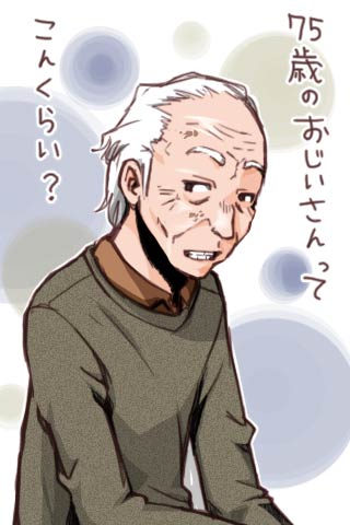 でもこうやって見ると、75歳はもう少しじいさんかも知れないなぁ。もっとシワありそうだし、首ももっと細い気がする。でも漫画だからなぁ、あんまりリアルにじいさんでも動かしにくいし描きにくい。